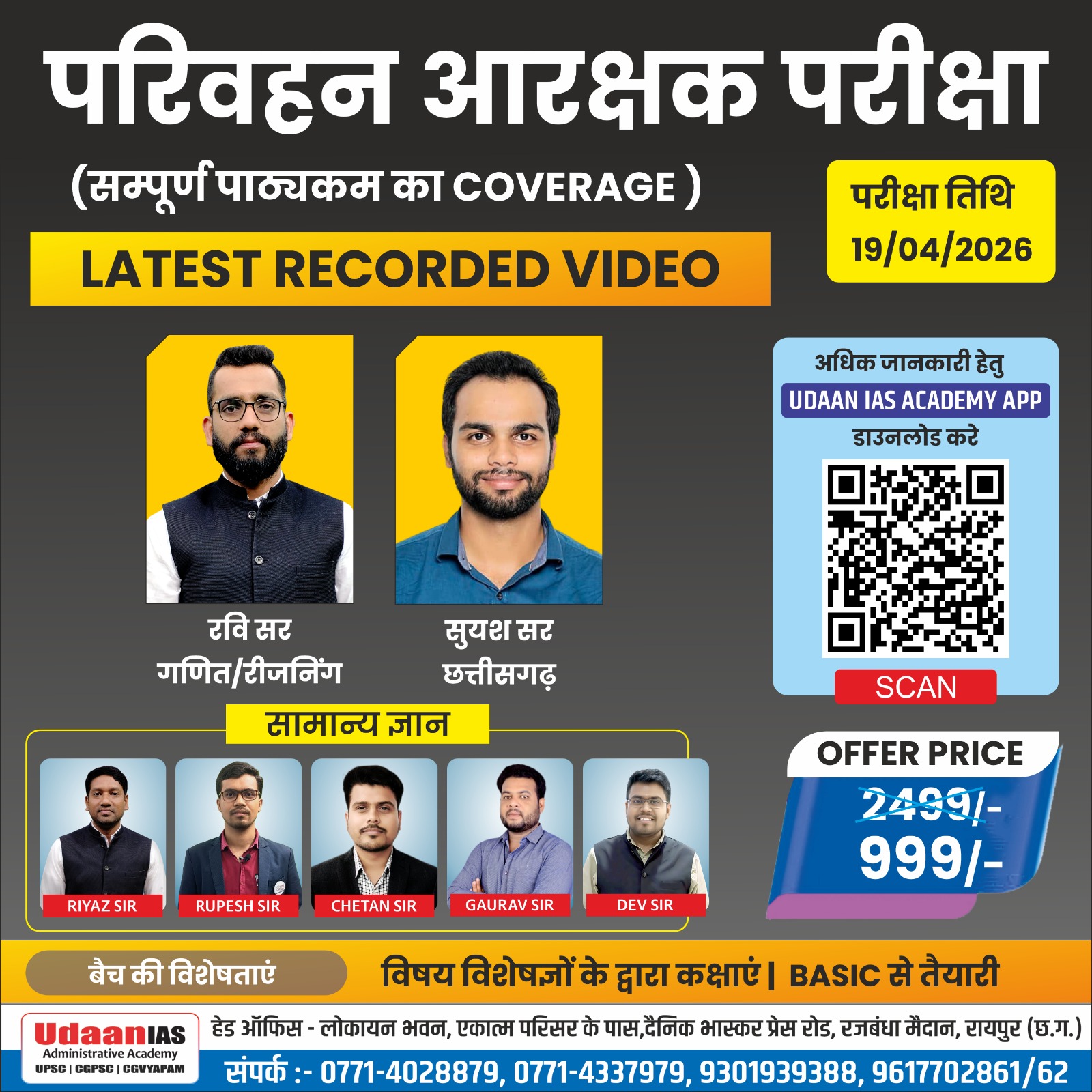 परिवहन आरक्षक परीक्षा के लिए complete syllabus coverage, मजबूत concept clarity, exam-oriented recorded video lectures, regular practice और mock tests के साथ result-oriented preparation, expert faculty के guidance में.